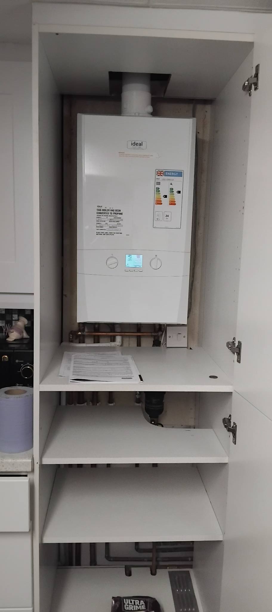 I deal with LPG installations in domestic and commercial applications as well as caravans: installation and connection of boilers and LPG cookers.